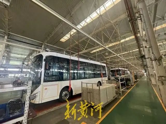 △4月29日,中通客車生產(chǎn)車間正在生產(chǎn)的客車